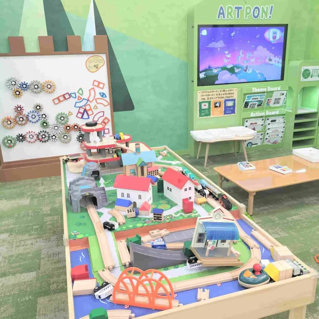 右奥のモニターは、自分で描いたイラストが画面に登場して動き回る『アートポン』というデジタル遊具!遊び場内にあるのは珍しいですよね。